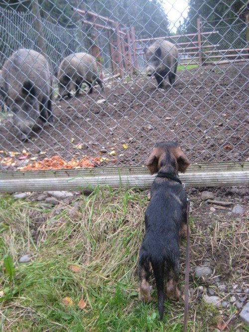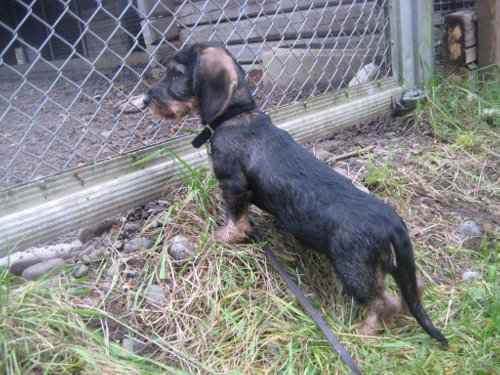 ![]() Mäyräkoira pentu CurlyCo Trick that Fox pääsi tutustumaan 24.9.2011 metsästysreissulla villisikoihin. Alla pari linkkiä videoihin Trick That Fox haukkuu saalista Trick That Fox ja hyvä haukku Kuvia /